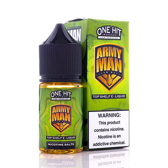 One Hit Wonder is one of the most admired and respected crafters of fine e-juice within the industry today. Their extensive assortment of award-winning flavors has secured them the loyalty and trust of vapers from all around the world. Within their distinguished Salt collection, Army Man Salt is unquestionably one of the most sought-after, and an offering that is so mouthwatering you will never want to fill your tank with anything else.
